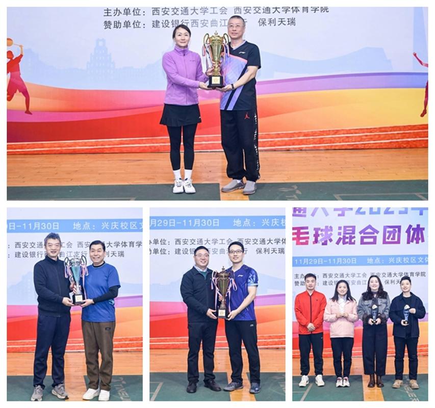 经过52场激烈角逐,八强战队脱颖而出。资产公司摘得冠军,一附院一队获得亚军,航天学院获得季军,电信学部一队获得第四名,电气工程学院、二附院1队、医学部和城市学院并列第五名。电信学部党委书记梁莉、体育学院副院长朱雪宇、校工会副主席谢志锋、电气工程学院党委副书记、教职工羽毛球协会常务副会长宋杰、比赛执行裁判长闫宽等老师分别为获奖队伍颁奖。