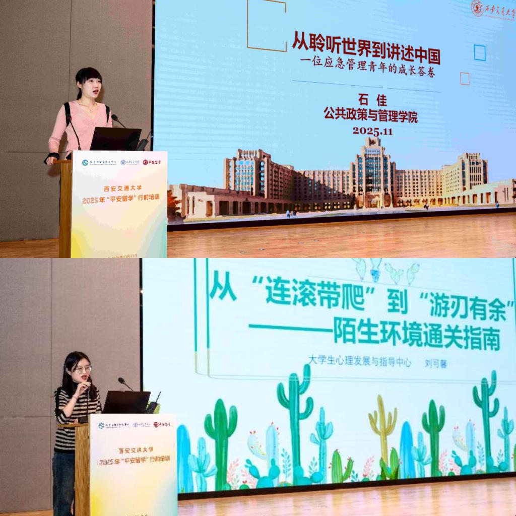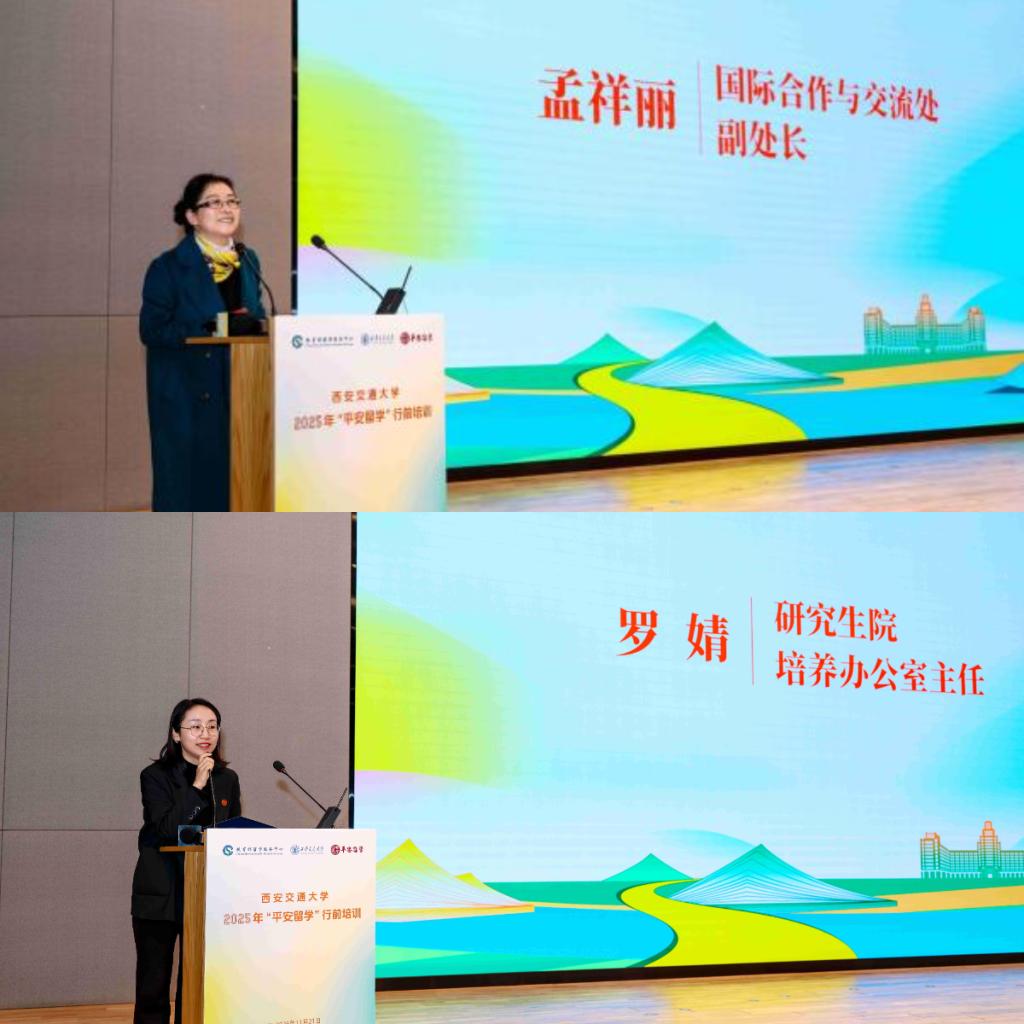 日前,西安交通大学2025年“平安留学”行前培训在创新港举办,活动邀请西安市公安局警察训练支队、留学归国人员代表、心理指导中心、汉唐公证处、校财务处等相关领域专家就海外心理调适、留学安全风险、公证事务办理及财务报销手续等内容开展专题讲座。西安交大2025年拟出访公派师生参加培训会,培训会由国际处孟祥丽副处长主持,研究生院培养办罗婧主任参加活动。