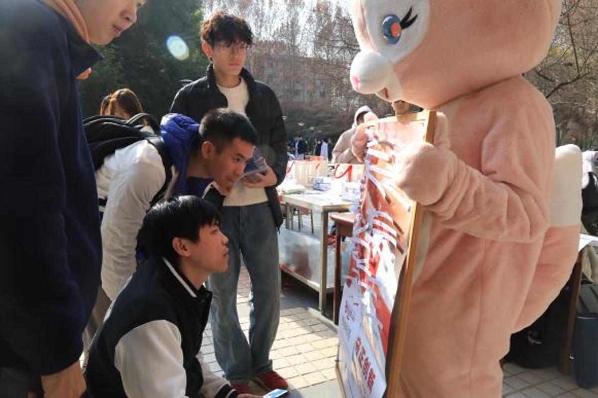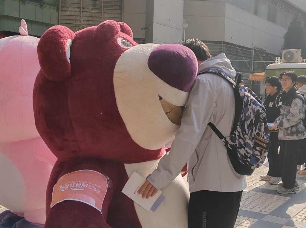 心理学协会延续“爱的抱抱”温情互动形式,两位志愿者身着玩偶服装,手持“我是艾滋感染者,你愿意拥抱我吗?”的标识牌,主动邀请过往同学给予拥抱。通过这种直观而富有感染力的方式,传递“日常接触不会传播艾滋病”的科学知识,打破不必要的恐惧与疏离。与此同时,心理学协会还发放宣传册,帮助同学们掌握科学防护方法,树立“主动检测、积极预防、关爱他人、消除歧视”的责任意识,进一步体现了交大学子的人文关怀。