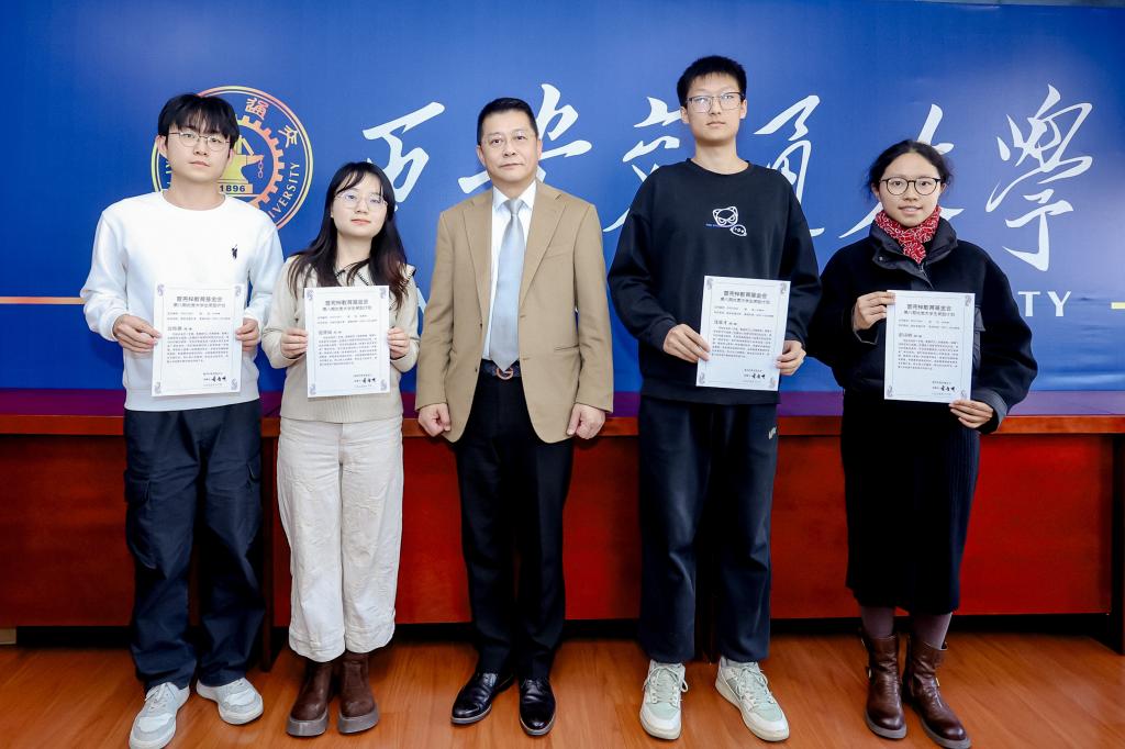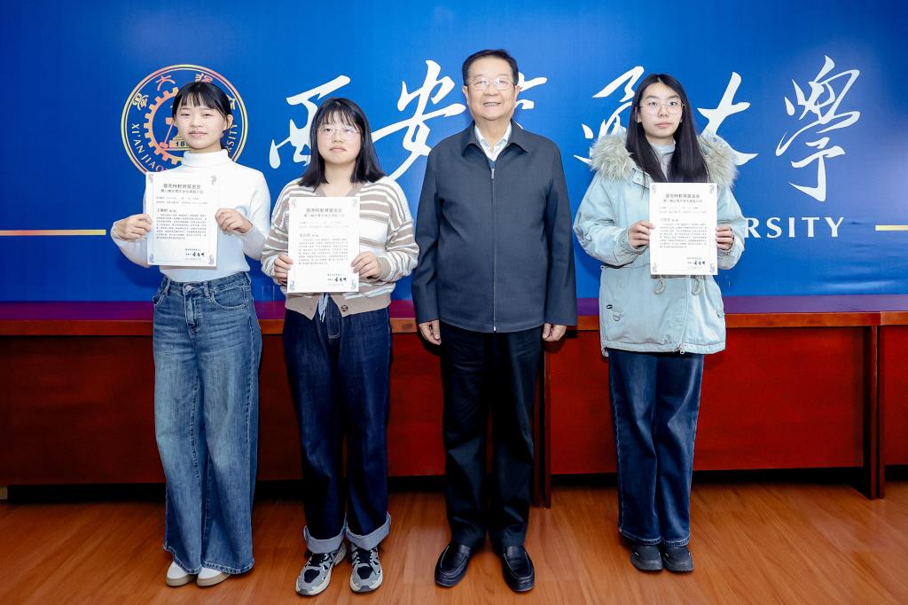 曾智明和刘利民为西安交大荣获2025年度曾宪梓教育基金会第八期“优秀大学生奖励计划”奖学金的学生颁发荣誉证书。