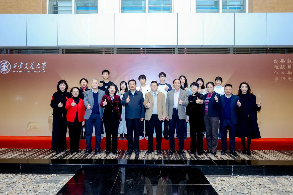 曾宪梓教育基金会一行参观了以曾宪梓先生的名字命名的宪梓堂,与正在排练西迁话剧《追忆西迁年华——向西而歌》的学生们交流并合影留念。走访了学校“一站式”学生社区文治书院、“同心圆”工作室及学生心理发展指导中心,了解学校在学生社区建设、文化育人及心理支持等方面的创新举措与育人成效。