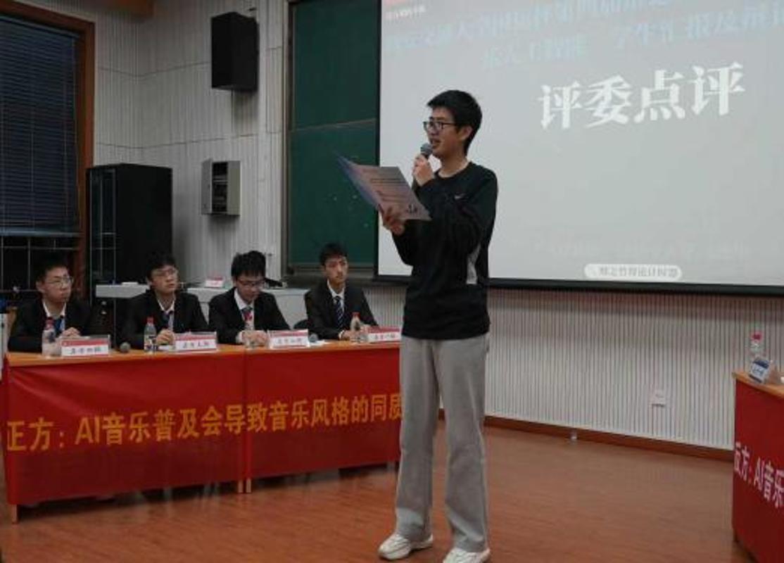 AI赋能艺术,跨界交锋焕彩。近日,西安交通大学第四届“国运杯”辩论赛初赛与《走进音乐人工智能》学生交流展示活动同步启幕,共赴跨学科盛宴。学生以相声、情景剧呈现AI音乐创作亮点,辩手围绕AI与音乐核心议题激烈思辨,线上线下联动掀起参与热潮。活动获中华网全程直播,累计观看40.4万人次、点赞5.7万人次,成为课程跨学科教育实践的生动示范。
