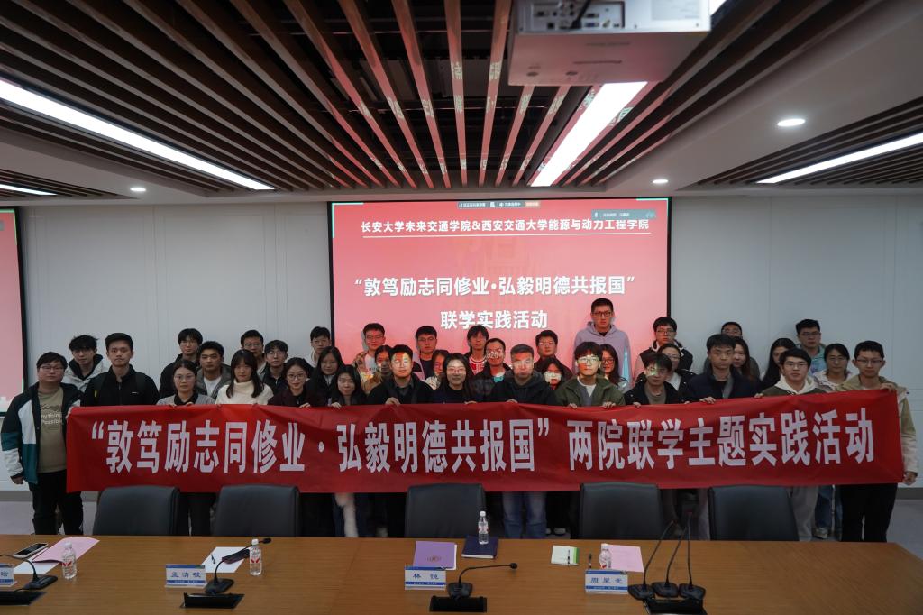 12月12日,西安交通大学能源与动力工程学院与长安大学未来交通学院联合举办“敦笃励志同修业,弘毅明德共报国”主题联学实践活动。两院师生代表齐聚一堂,围绕思想引领、社会责任、学术科研与青年担当等话题展开深入交流,共话成长、共谋发展。