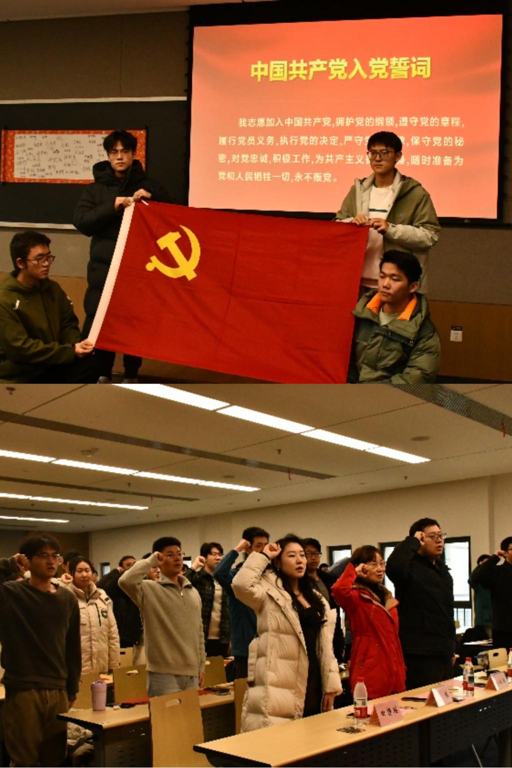 励志书院党总支副书记丁俊亦带领全体党员面向党旗庄严宣誓,重温入党誓词。