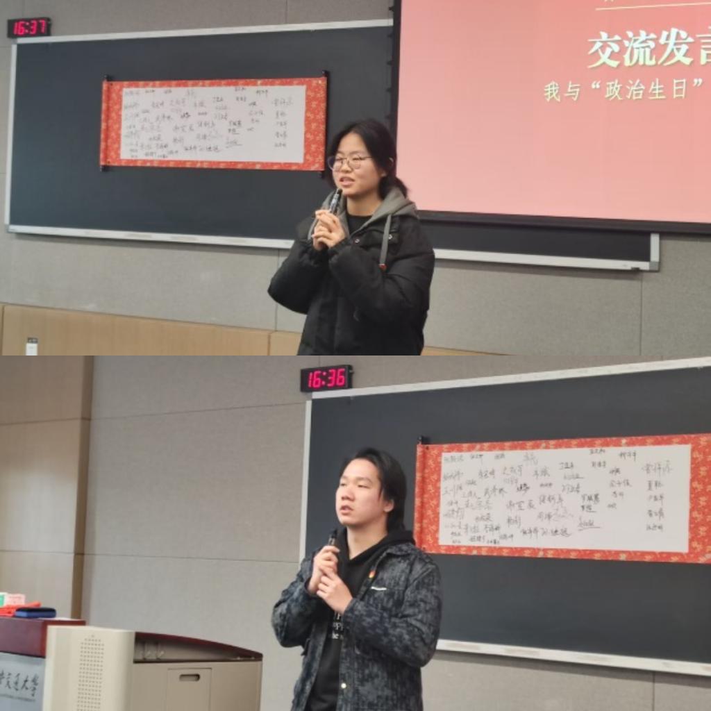 罗珺骞、李锦科两位同志结合自身成长经历分享感悟,认为“政治生日”既是对过往成长的肯定,更是重温入党初心、践行使命承诺的重要契机。他们立足成长历程,清醒正视自身不足,明确将以党员标准严格自勉,与全体同志携手实干笃行,为国家发展事业贡献青春力量。