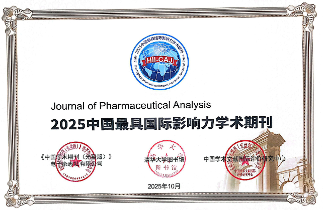 《药物分析学报(英文)》入选“中国最具国际影响力学术期刊”(自然科学与工程技术·英文),连续8年蝉联该项荣誉。在该榜单中的国际他引影响因子为9.292,ICCI指数为138.959,境外施引作者数破2万。