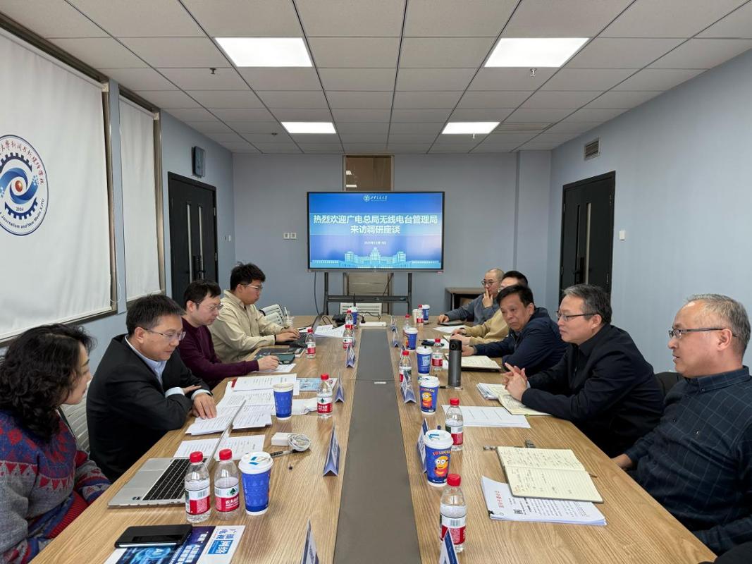 2025年12月19日上午,国家广播电视总局无线电台管理局到访西安交通大学新闻与新媒体学院开展专题调研座谈,围绕“重温经典”声音广播项目及学术期刊建设等合作展开深入交流。广电总局无线电台管理局分党组书记、局长杜国柱、办公室主任张斌、综合处处长赵亚和、科技处处长周山、五九四台长夏雄超、杂志社社长光辉,以及西安交通大学新闻与新媒体学院院长汪文斌、领军学者阚平、院长助理范晓莹、新闻系主任徐婧、智能传播系党支部书记杨帆、青年优秀人才王豪、产教融合秘书吴薇参加会议。座谈由汪文斌主持。