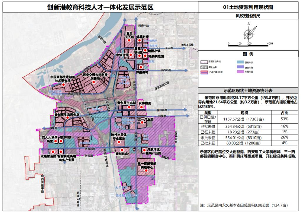 2024年9月,西安交通大学创新港咸阳新区项目签约落地,其位于咸阳高新区纺织大道以东、规划路以南、高科一路以西、河堤路以北区域,总占地面积超过2000亩。双方将深化教育、科技、人才三位一体良性循环,加快推动西安咸阳一体化发展,共建成果转化先行示范区,承载基础研究和原始创新、前沿和关键核心技术研发、科技成果孵化转化、拔尖人才培养等,形成创新园区、孵化园区和产业园区的全链条创新体系。