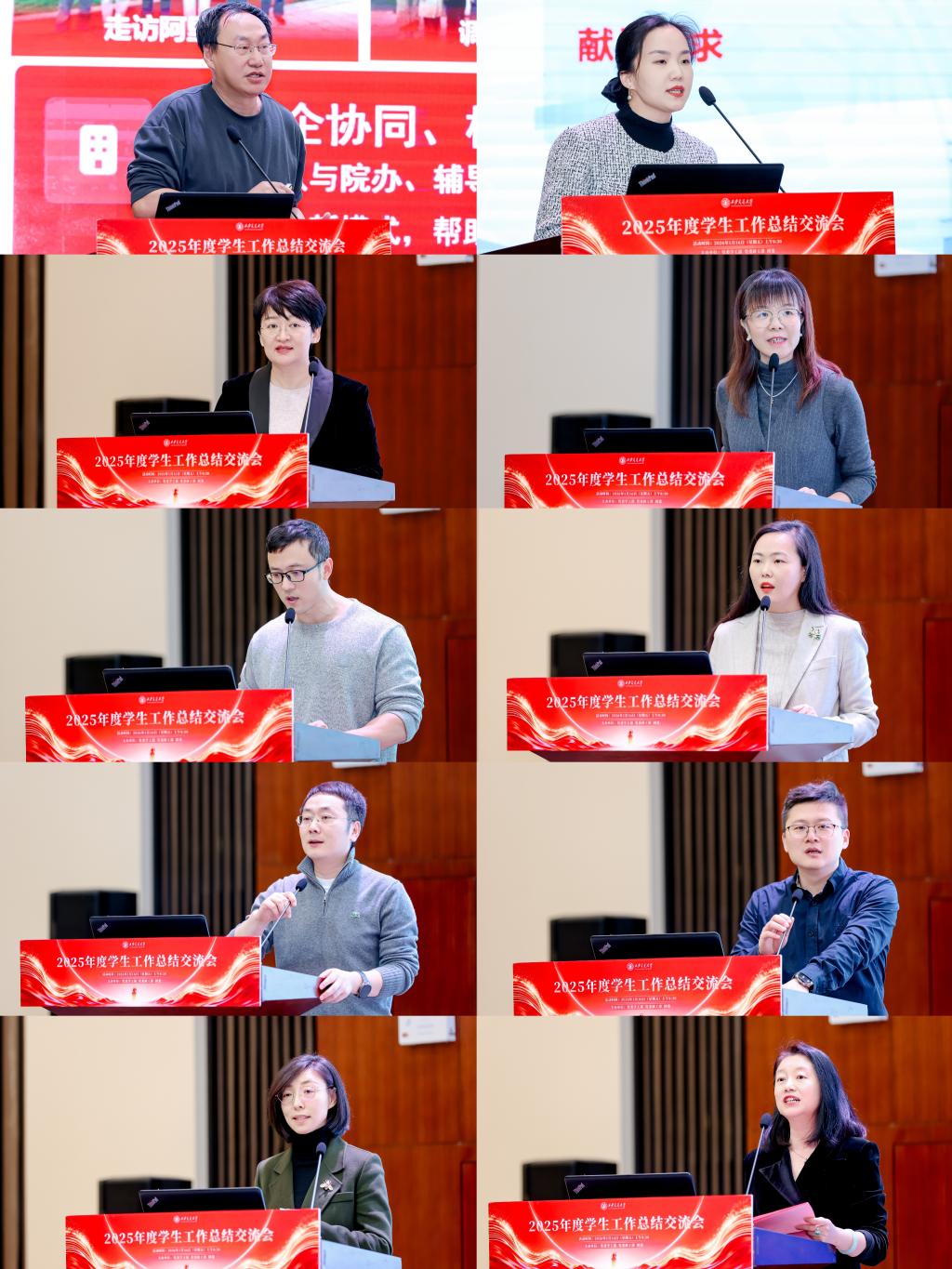 会议总结了学生工作年度成效,深度交流育人实践经验,表彰先进典型标杆,系统谋划新时代辅导员队伍建设与学工事业高质量发展路径。14位学生工作管理干部代表进行交流发言。