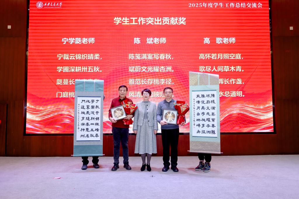 会议表彰了2025年度优秀思政工作案例与工作法、共青团工作先进个人、优秀学生工作管理干部以及学生工作突出贡献个人,王欢为获奖教师颁发证书。