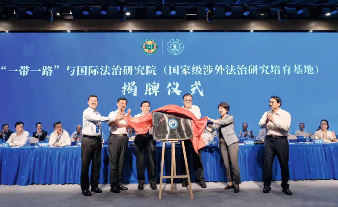 2023年,西安交通大学校领导与中国法学会领导以及教育部、司法部相关部门领导共同为国家六部委遴选“国家级涉外法治研究培育基地”“‘一带一路’与国际法治研究院”揭牌