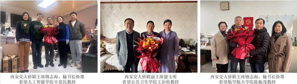近日,西安交大侨联组织开展新春走访慰问活动。西安交大侨联主席锁志海,副主席廖红建、康玉明,秘书长徐墨分别带队,走访慰问了归侨代表辛景民,归侨退休教授代表王治伦、陈振茂、臧伟进,以及侨眷代表张娴如、佘杏北,向他们致以诚挚的新春问候和美好的节日祝福。
