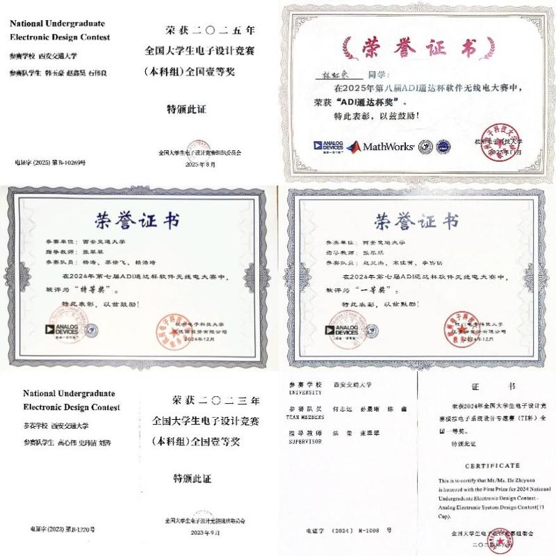 本科生竞赛部分国家级获奖证书