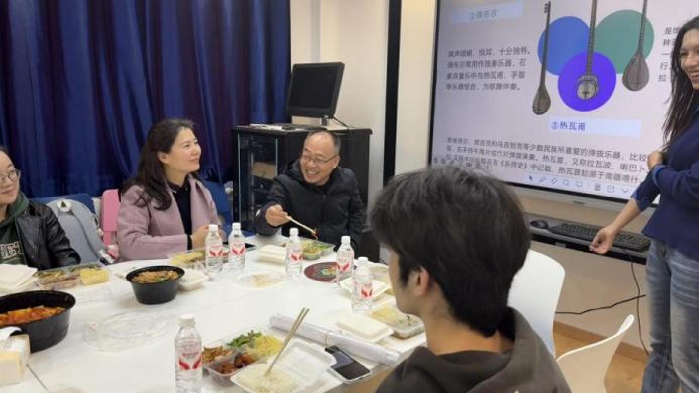 师生们一边享用精心准备的民族特色美食,一边围绕两位老师的讲话交流探讨,分享家乡文化与生活趣事,现场氛围愈发浓厚,不同民族的情谊在交流中不断升温。