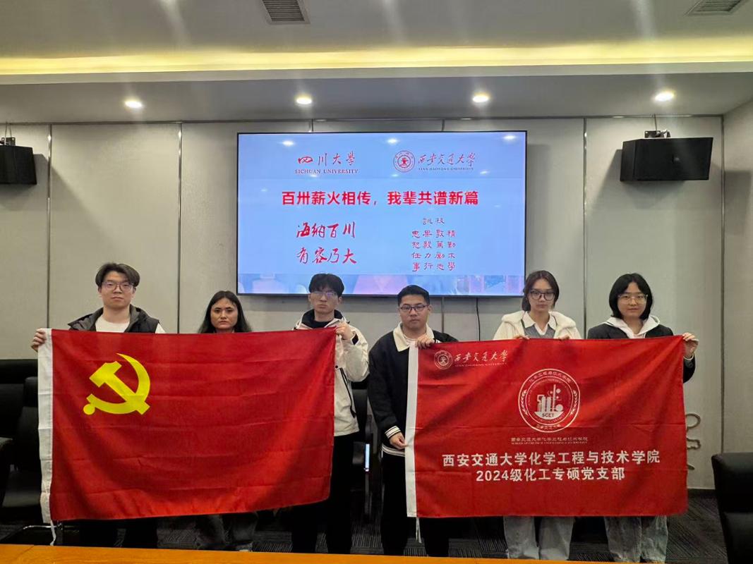 在西安交通大学即将迎来建校130周年暨西迁70周年之际,为了强化党性修养、深化党纪学习教育,3月25日下午,西安交通大学化学工程与技术学院2024级化工专硕党支部与四川大学化工学院2024级燃烧动力学党支部(以下简称“川大燃动支部”)携手组织了以“树正确政绩观,献礼百卅校庆”为主题的党纪学习教育活动。