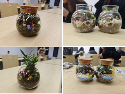 2025级硕士研究生李博同学表示:“这是我第一次尝试微景观制作,从填土到造景,每一步都充满了新鲜感。看着空瓶子慢慢变成充满生机的小森林,满满的成就感油然而生,也让我对自然与手工创作有了更深的热爱。”