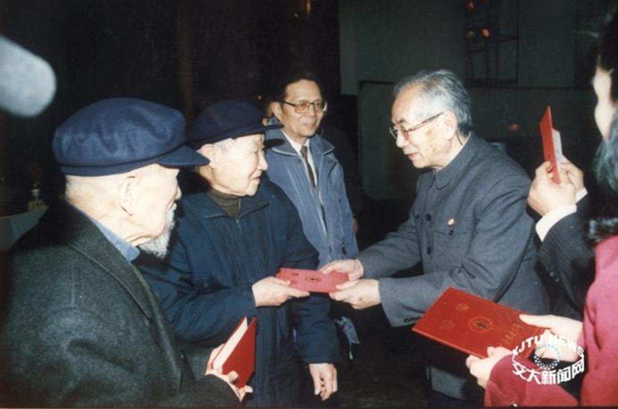 1996年赵富鑫(左1)被学校授予终身教授荣誉称号