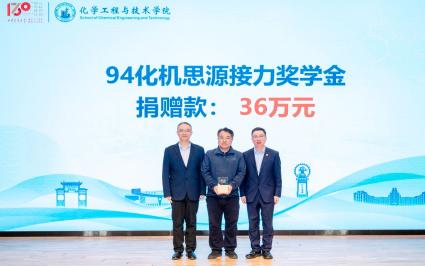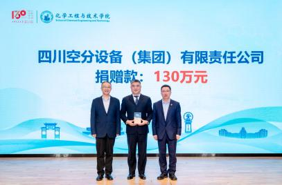 拳拳赤子心,浓浓母校情。自百卅校庆捐赠活动开展以来,学校、学院收到了化工校友和师生们的各类形式捐赠累计1930余万元,其中企业与团队捐赠390万元、股权捐赠1300万元、个人捐赠240.9732万元。大会现场,许佳辉代表学校接受四川空分设备(集团)有限公司、绿色高效能源化工装备技术团队以及94化机思源接力奖学金捐赠,杨贵东为捐赠人颁发鸣谢牌。