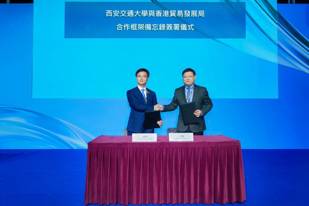 此次参展也是西安交大与香港贸发局深化合作的生动实践。前期,经积极沟通,双方在本次创科展期间签订合作框架备忘录,聚焦科技创新、金融赋能、国际化发展及智库建设开展多层次、宽领域的深度合作。