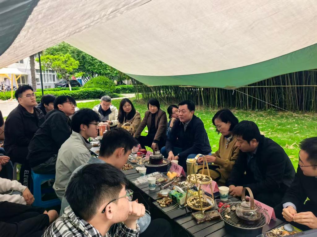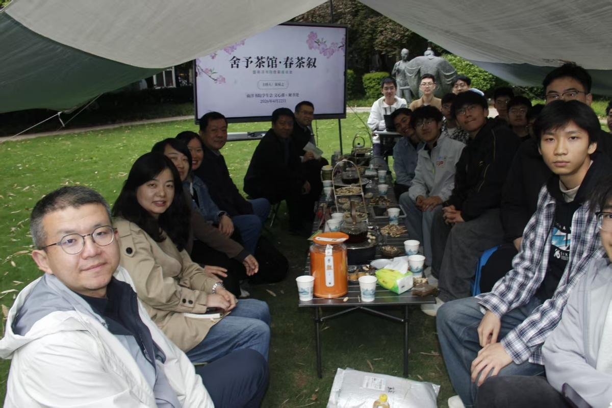 春风拂绿,草木芬芳,茶香袅袅,暖意融融。为进一步丰富校园文化生活,舒缓师生学业与生活压力,搭建师生零距离交流平台,传承中华优秀传统茶文化,4月22日下午,西安交通大学南洋书院在东八草坪举办 “舍予茶馆・春茶叙” 主题活动,融合鲜果慢烤、漆扇手作、香囊DIY、石膏娃娃绘制等多元体验,邀请学院、学校各职能部处及书院教师与学生围炉煮茶、共话交流。活动由南洋书院学生会主办,邀请电子学院教学副院长谭文疆、微电子学院副院长程军、电气学院教授张耀、南洋书院院务副主任顾蓉、学生处杨艳丽、网信中心杨洁、后勤保障部牛晨、教务处张瑶以及辅导员王彦清,与二十余名学生代表共议校园事。