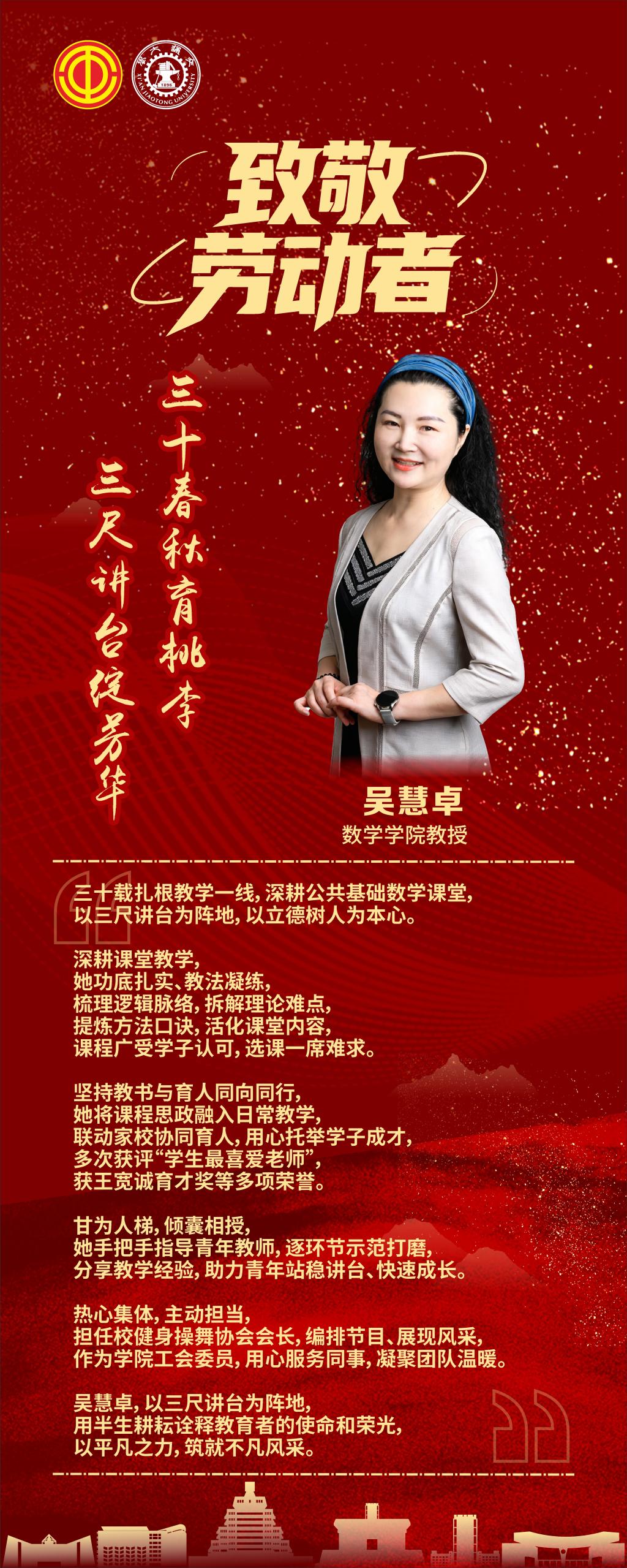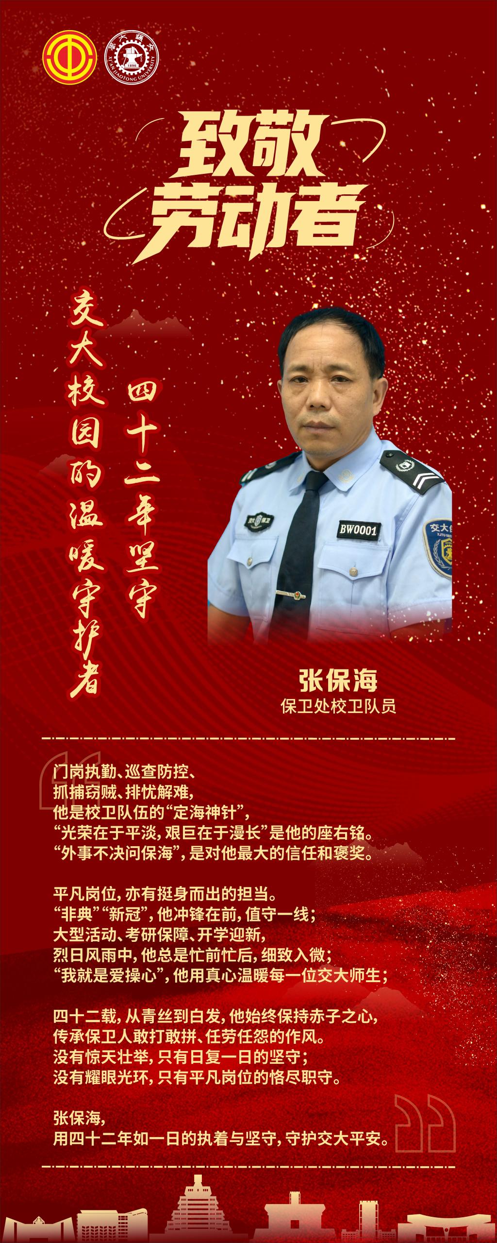 【编者按】为弘扬劳模精神、劳动精神、工匠精神,在“五一”国际劳动节来临之际,西安交大工会将组织举办“致敬劳动者”系列活动。现开设“致敬劳动者”专栏,聚焦学校教学科研、临床医疗、管理服务、后勤保障等各领域的普通劳动者,集中展现交大各条战线普通教职员工扎根一线、爱岗敬业、努力工作、无私奉献的精神风貌,传承弘扬西迁精神,根植爱国荣校情怀,矢志劳动创造未来,礼赞劳动精神,致敬新时代交大光荣劳动者,树立“劳动最光荣、奋斗最美丽”的交大榜样,引导广大师生员工将个人价值实现与学校发展融为一体,努力践行“中国梦·劳动美”的时代主题。