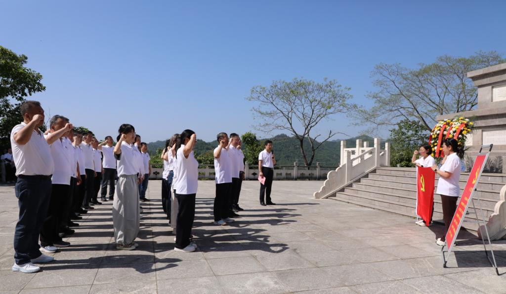 在庄严肃穆的革命英雄纪念碑前,全体人员举行了缅怀革命先烈仪式。学院党委书记李勇代表学院党委向革命烈士敬献花篮,全员肃立鞠躬默哀。默哀结束后,全体党员面向党旗庄严重温入党誓词,以铿锵誓言坚守初心使命,淬炼党性修养,筑牢信仰根基。