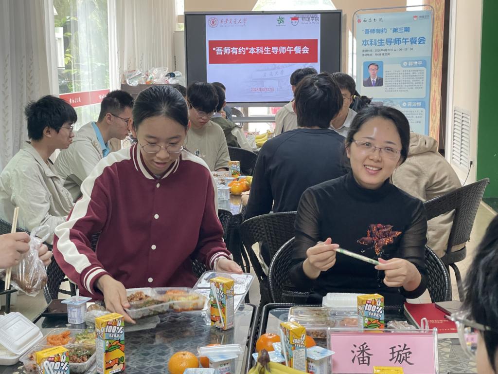 交流环节中,同学们围绕课程难点突破、科研入门路径、学业压力调适、升学深造规划等问题踊跃提问。三位老师以平易近人的态度,结合自身丰富的科研与教学实例,耐心解答了同学们的疑问,现场互动热烈,氛围轻松融洽。参与学生纷纷表示,这种与教授们同桌共餐、畅谈学业的形式既新奇又受益匪浅,不仅获得了针对性的学业指导,缓解了学业焦虑,更感受到了学院和书院对本科生成长的高度关怀与务实支持。导师们的言传身教,也进一步激发了他们深入探索物理世界的兴趣与信心。